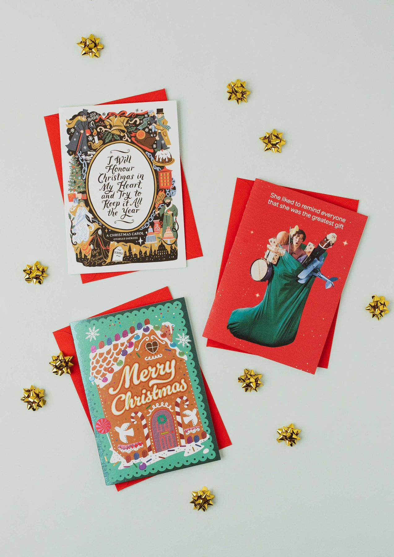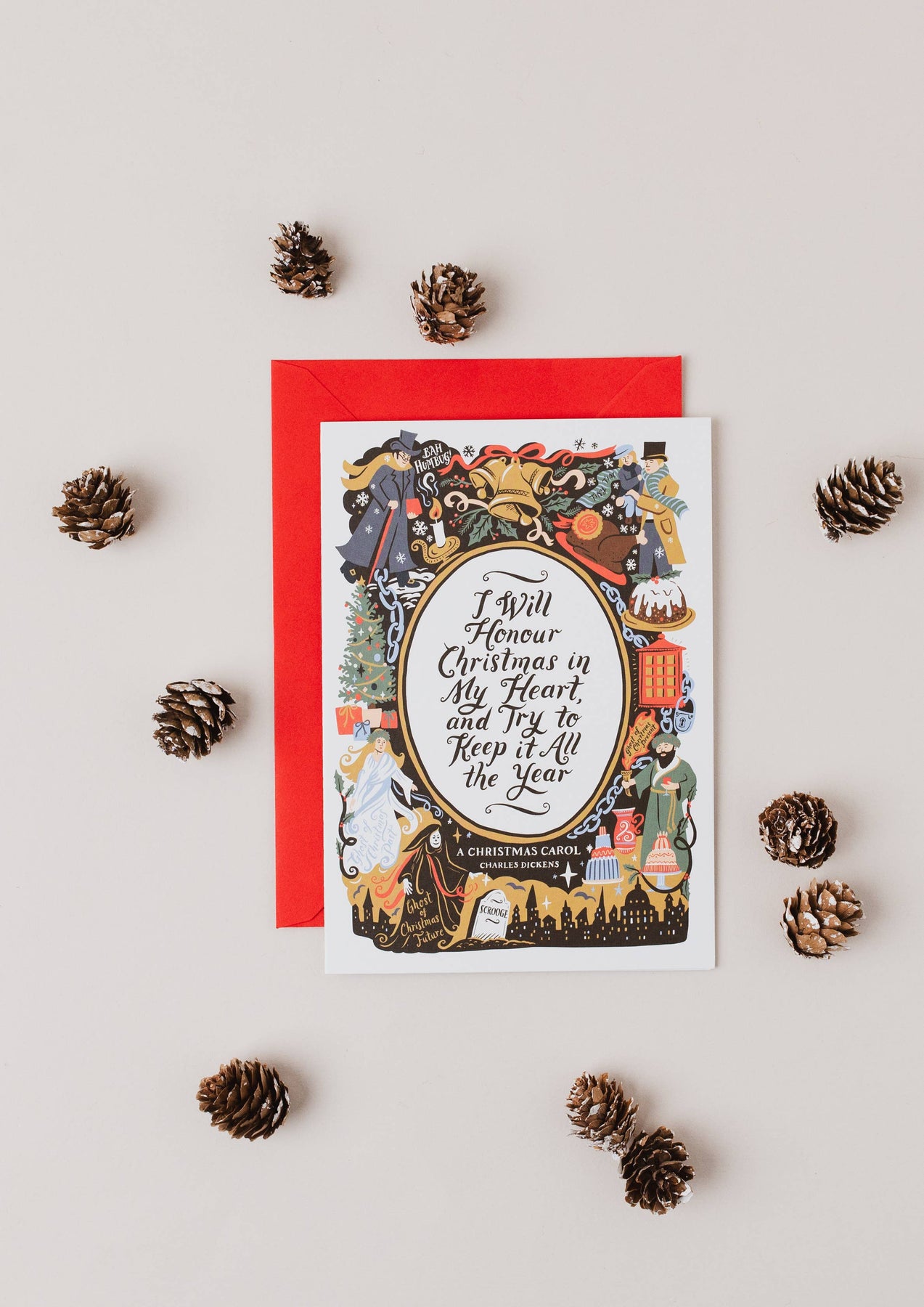 Introducing: Lucy Loves Literature Christmas cards! This beautiful range fuses classic literary scenes, quotes, and heroes with charming illustrations. This festive holiday card features a quote and designs inspired by Charles Dickens' classic tale A Christmas Carol. Created with Lucy Stephens, the artist known as Lucy Loves This.