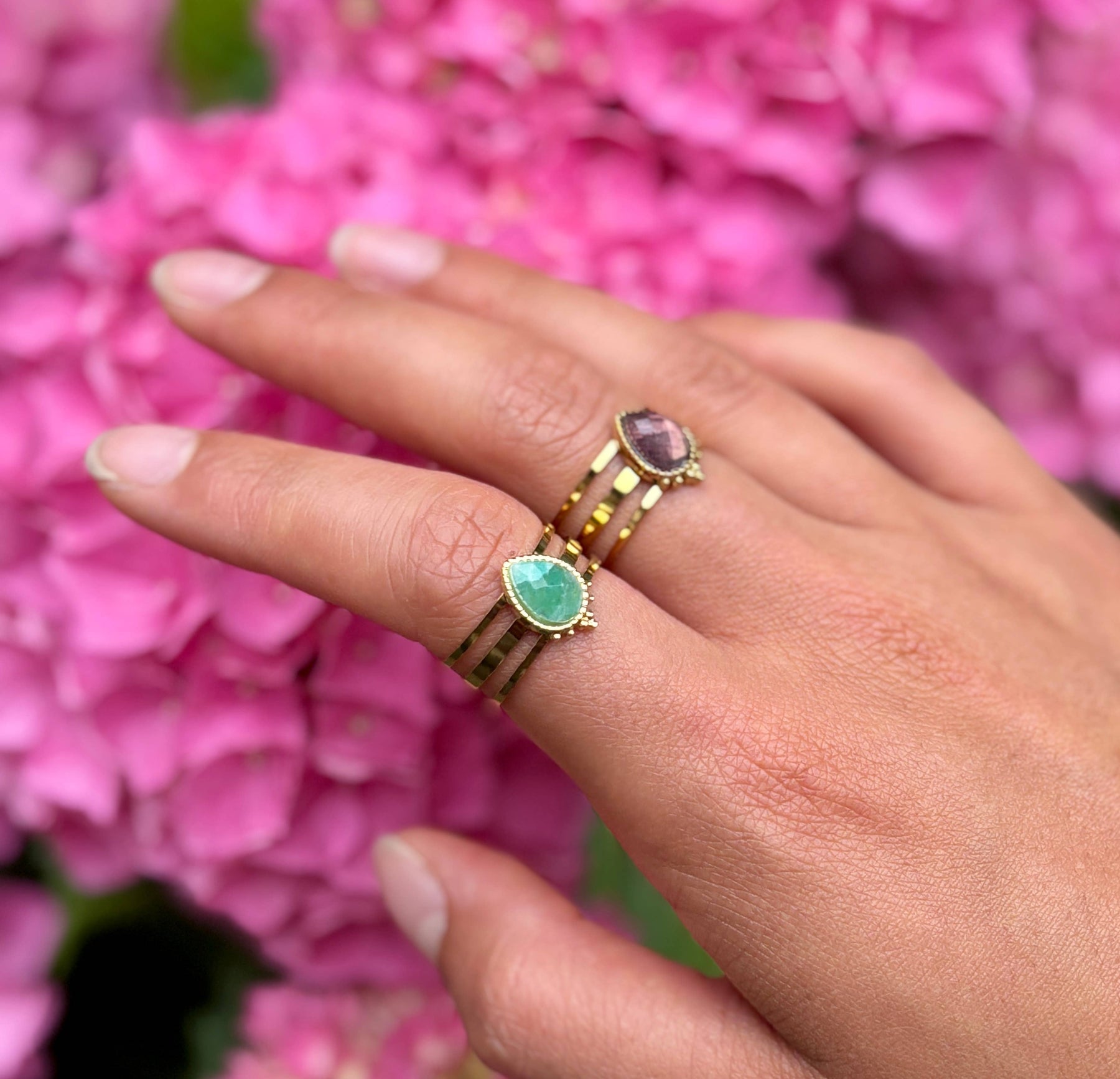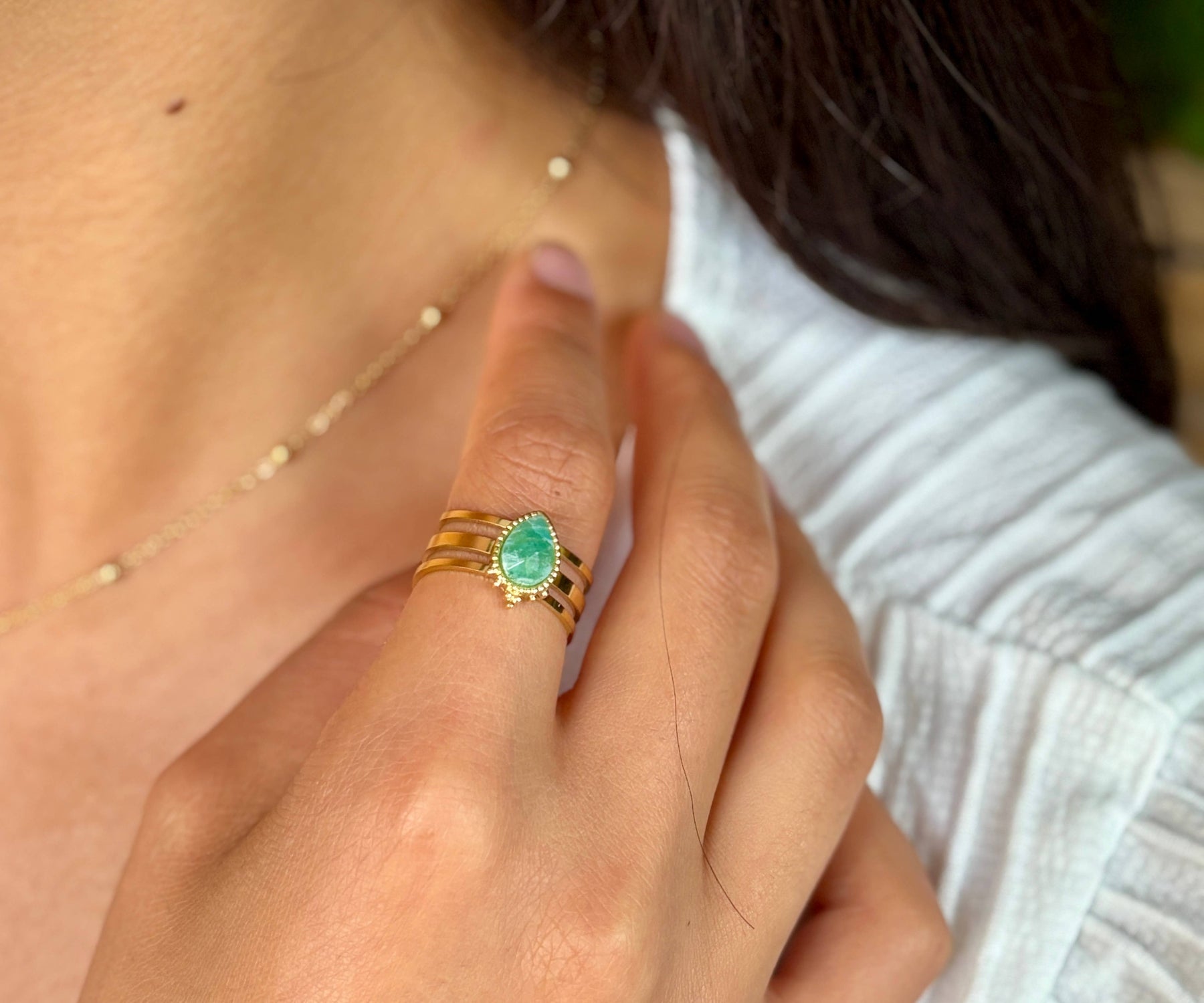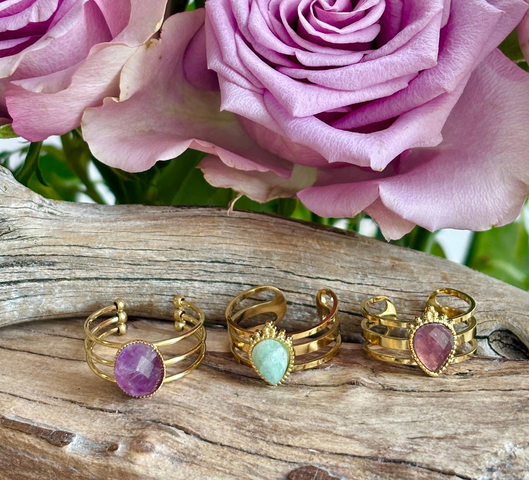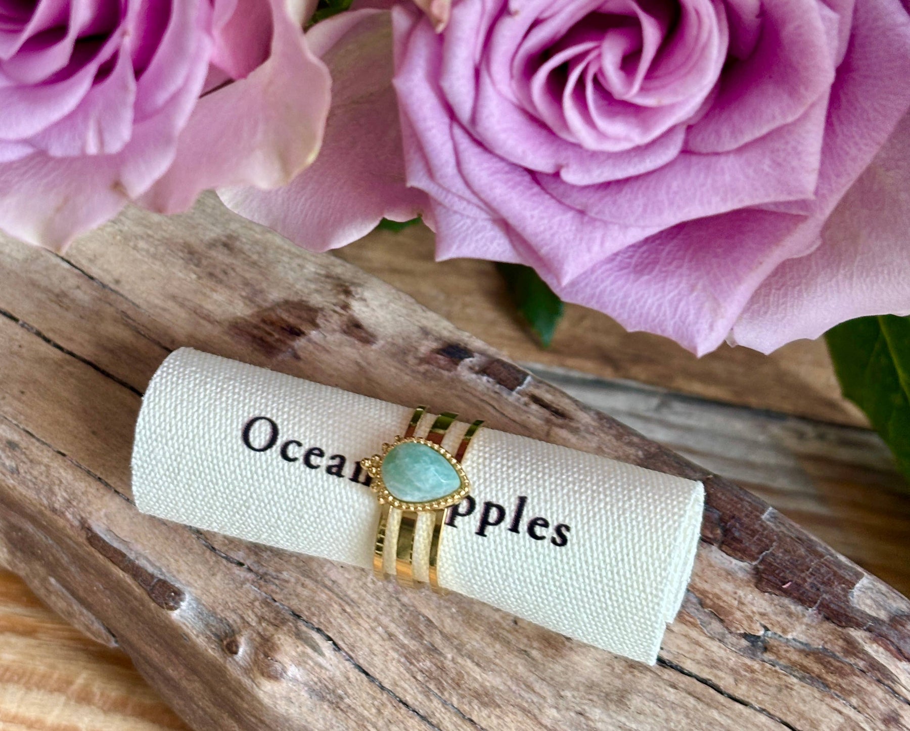 - 18ct Gold Plated - Base Metal: Stainless Steel - Tarnish Free & Waterproof - Gemstone: Amazonite - Dimension: Adjustable - Weight: 3g