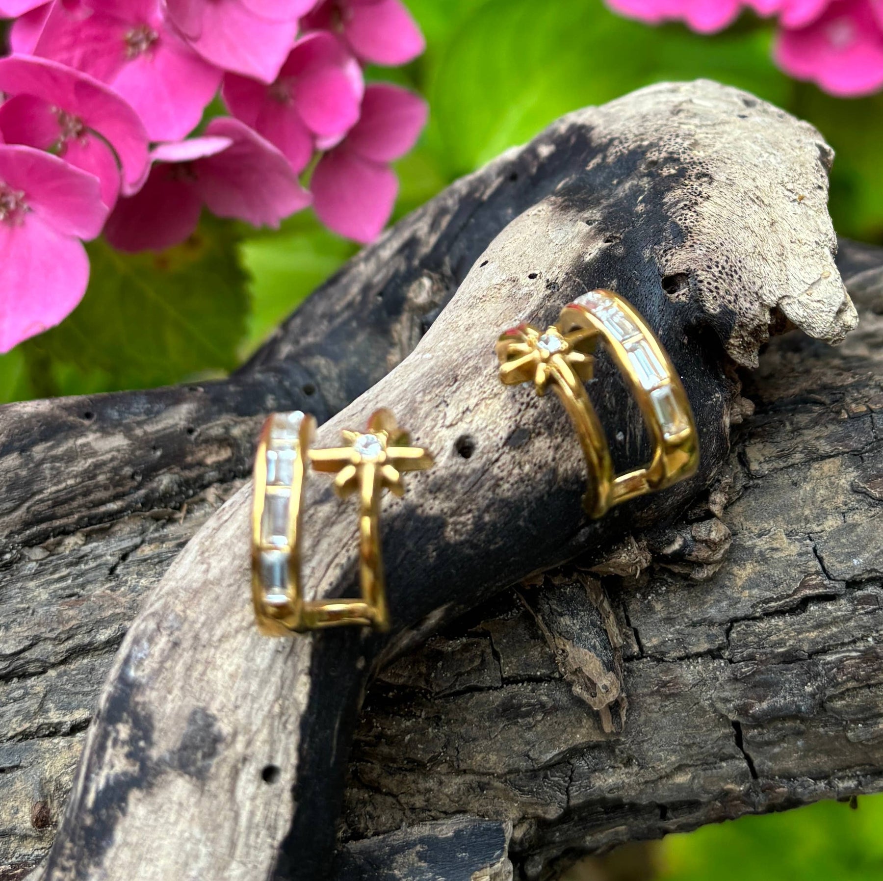 18ct Gold Plated Cubic Zirconia Star Double Curve Earrings