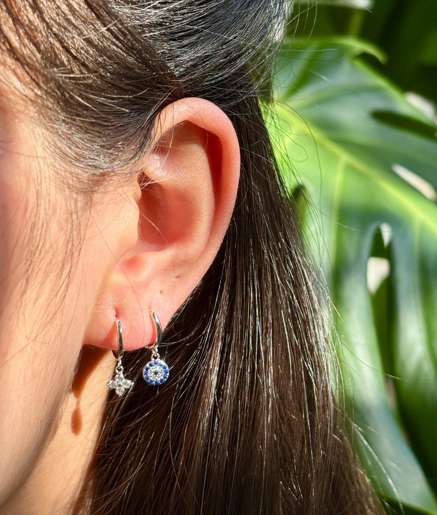 925 Sterling Silver Cubic Zirconia Clover Huggie Earrings