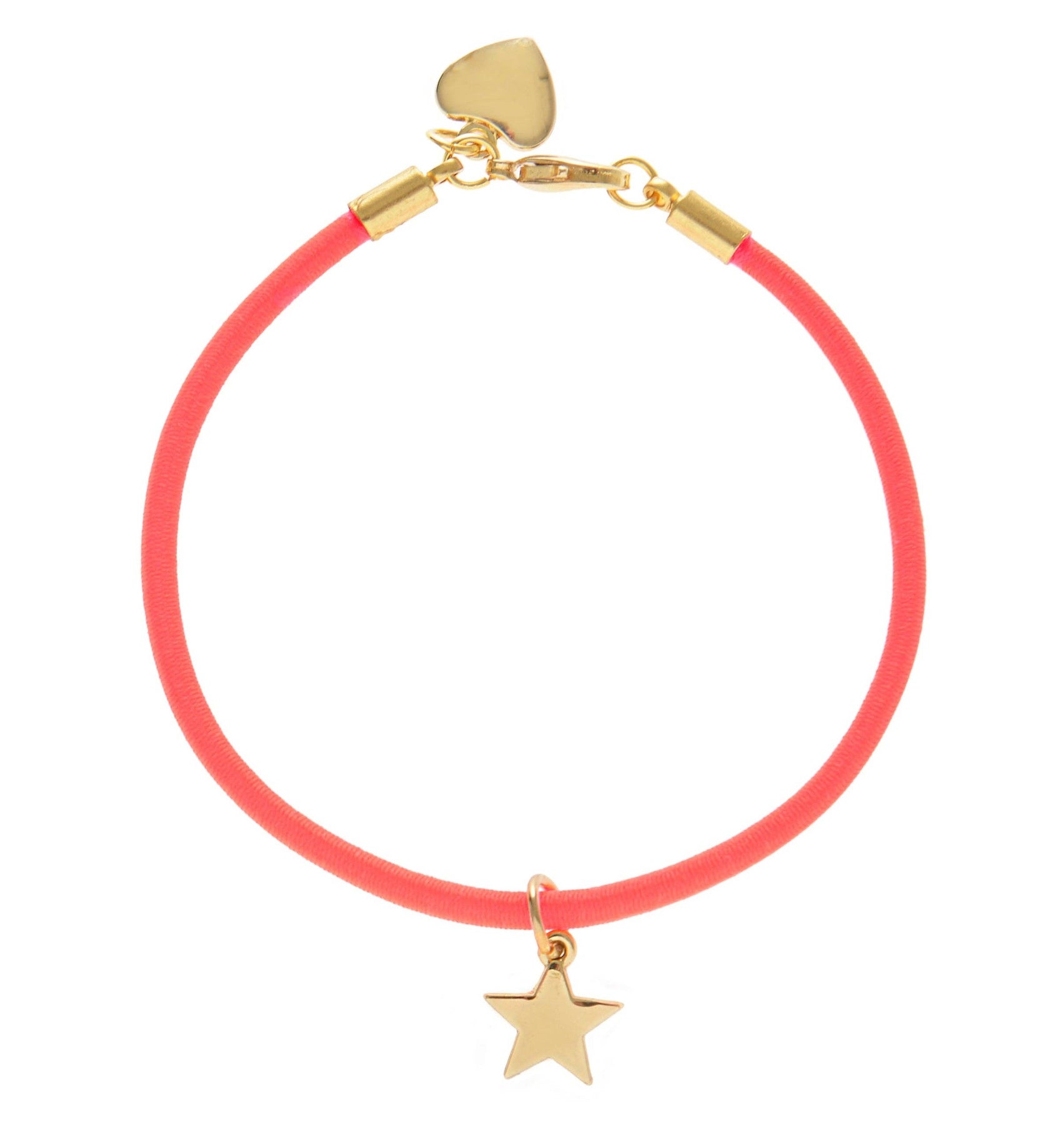 Introduce a pop of colour with this fabulous red neon elastic bracelet with a star and heart charm. Perfect in a stack.