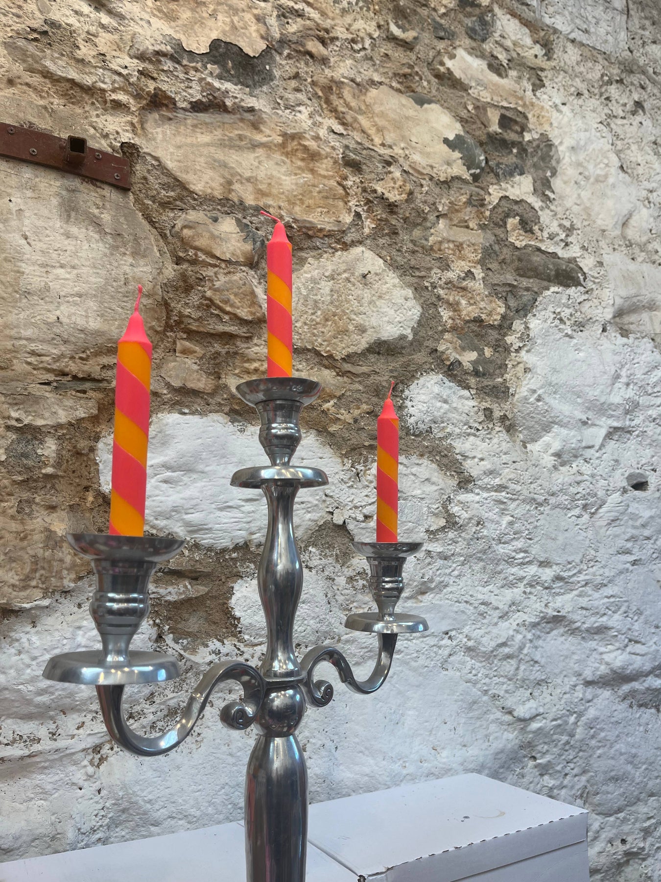 Orange & deep bright pink Helter Skelter Dinner Candle