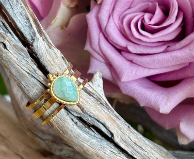 18ct Gold Plated Amazonite Drop Triple Band Ring