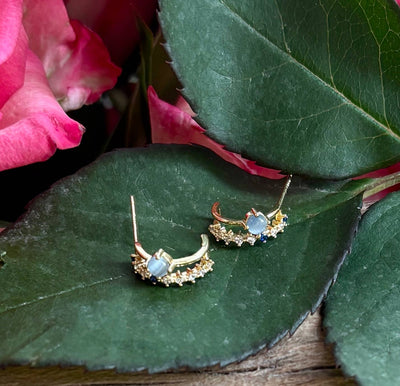 14ct Gold Plated Cats Eye Cubic Zirconia Stud Earrings