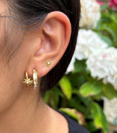 18ct Gold Plated Cubic Zirconia Star Double Curve Earrings