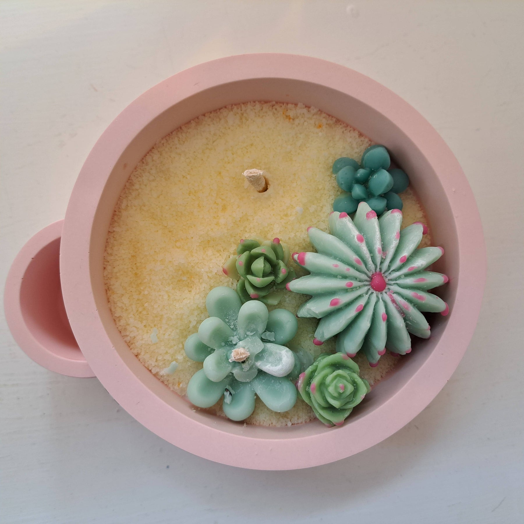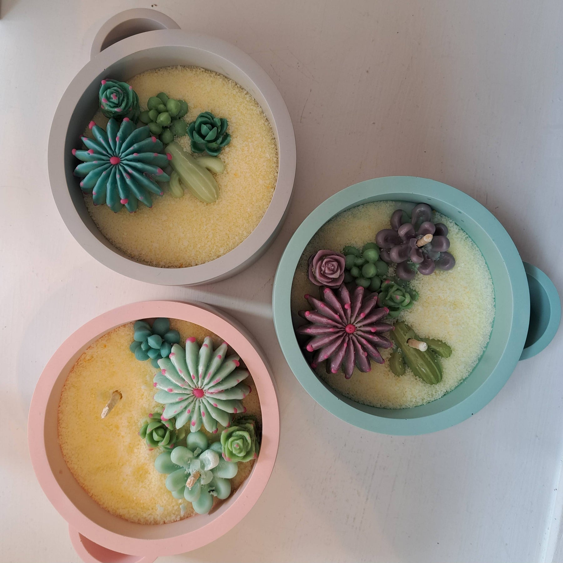 Handmade eco-resin pot candle filled with soy, beeswax, and coconut.