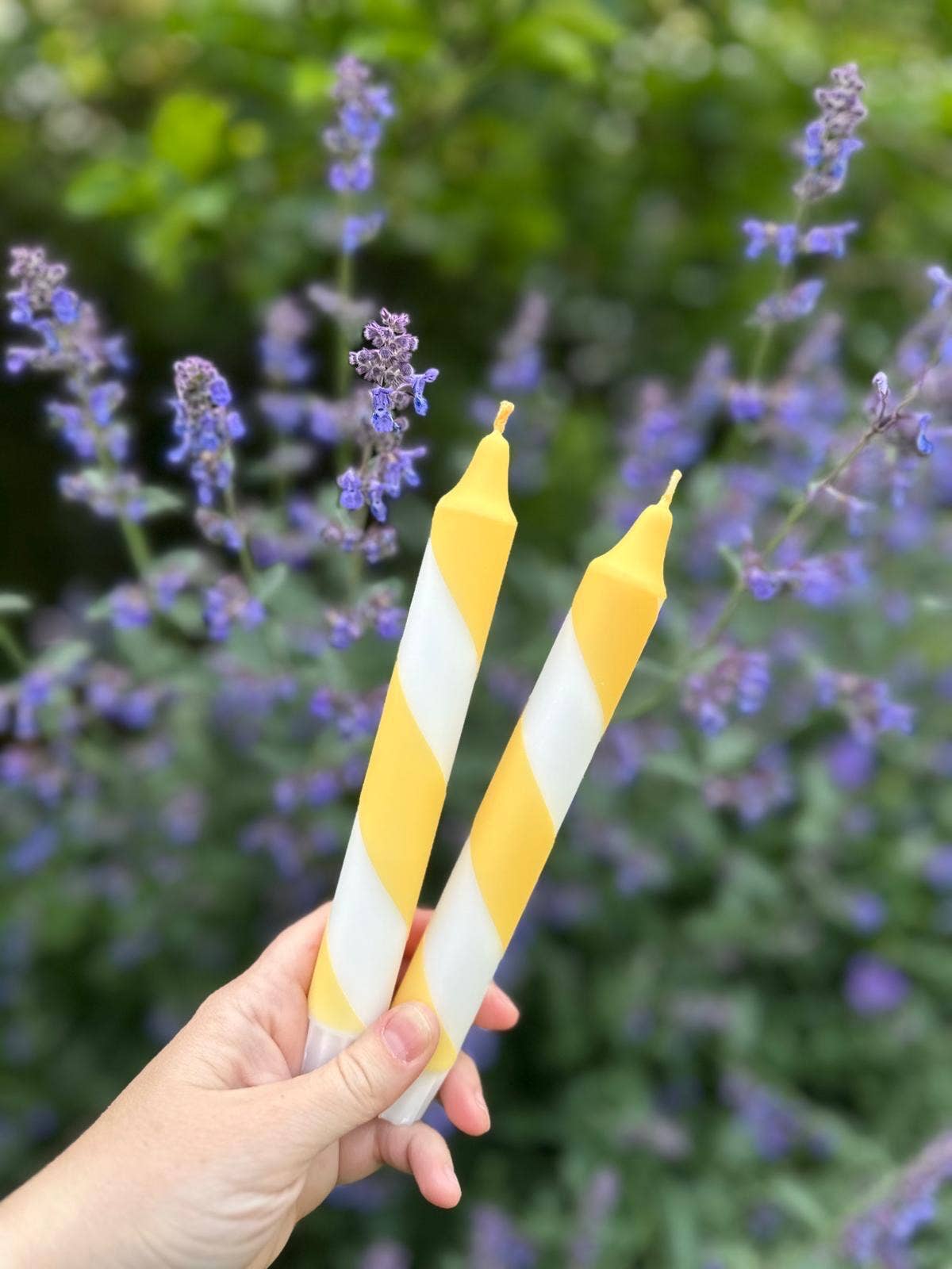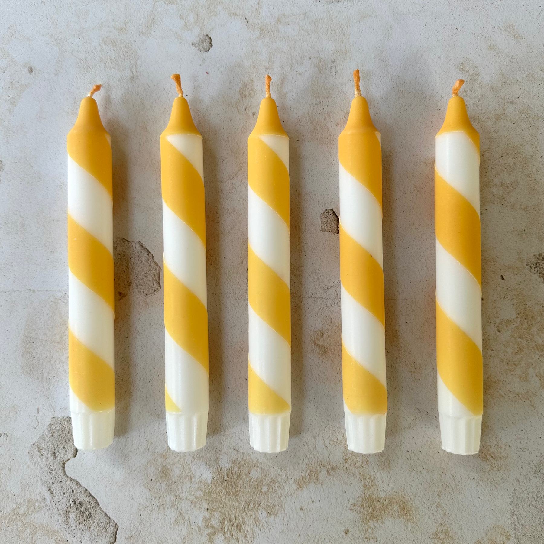 Butter Yellow & White Candy Cane Stripe Hand Dipped Candles
